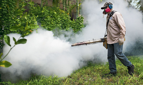Fogging is a technique used for killing insects that involves using a fine pesticide spray (aerosol) which is directed by a blower.
